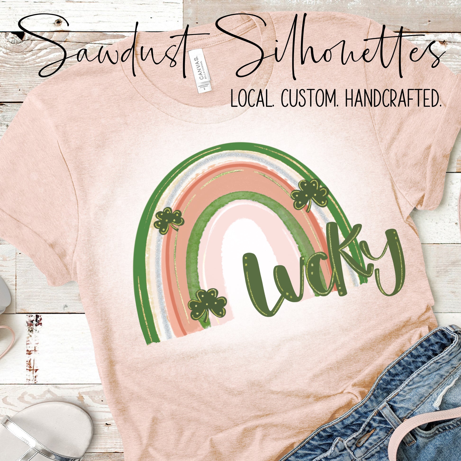 Lucky Peach and Green Rainbow Tee