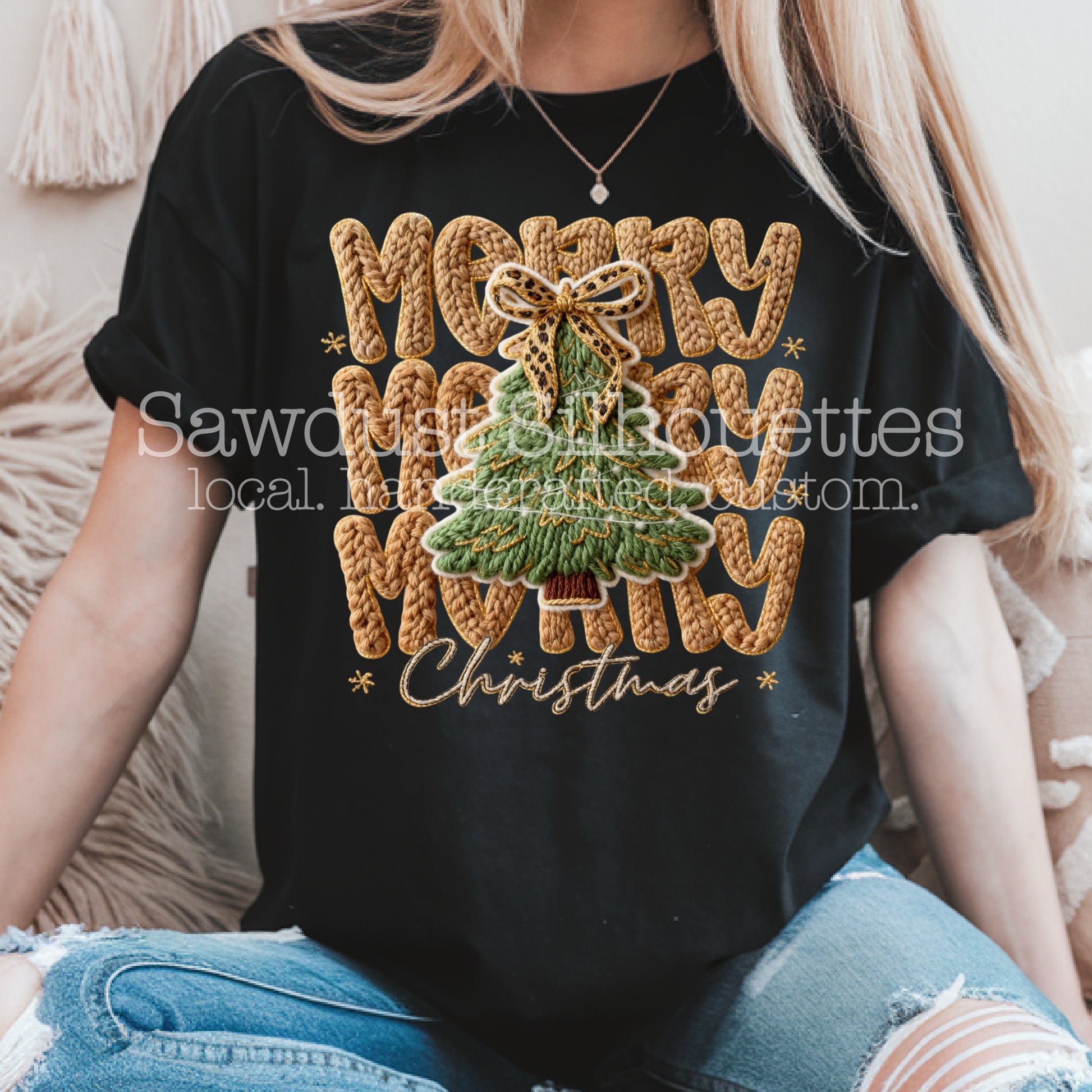 These cozy faux yarn latch & hook shirts bring handcrafted charm and nostalgic style to your wardrobe, without the bulk of real yarn. Each design mimics the look and texture of hand-hooked or embroidered yarn art, featuring detailed 3D-style stitching and soft, dimensional graphics that pop right off the fabric. Perfect for the holiday season and beyond, these tops combine a homespun aesthetic with modern comfort.