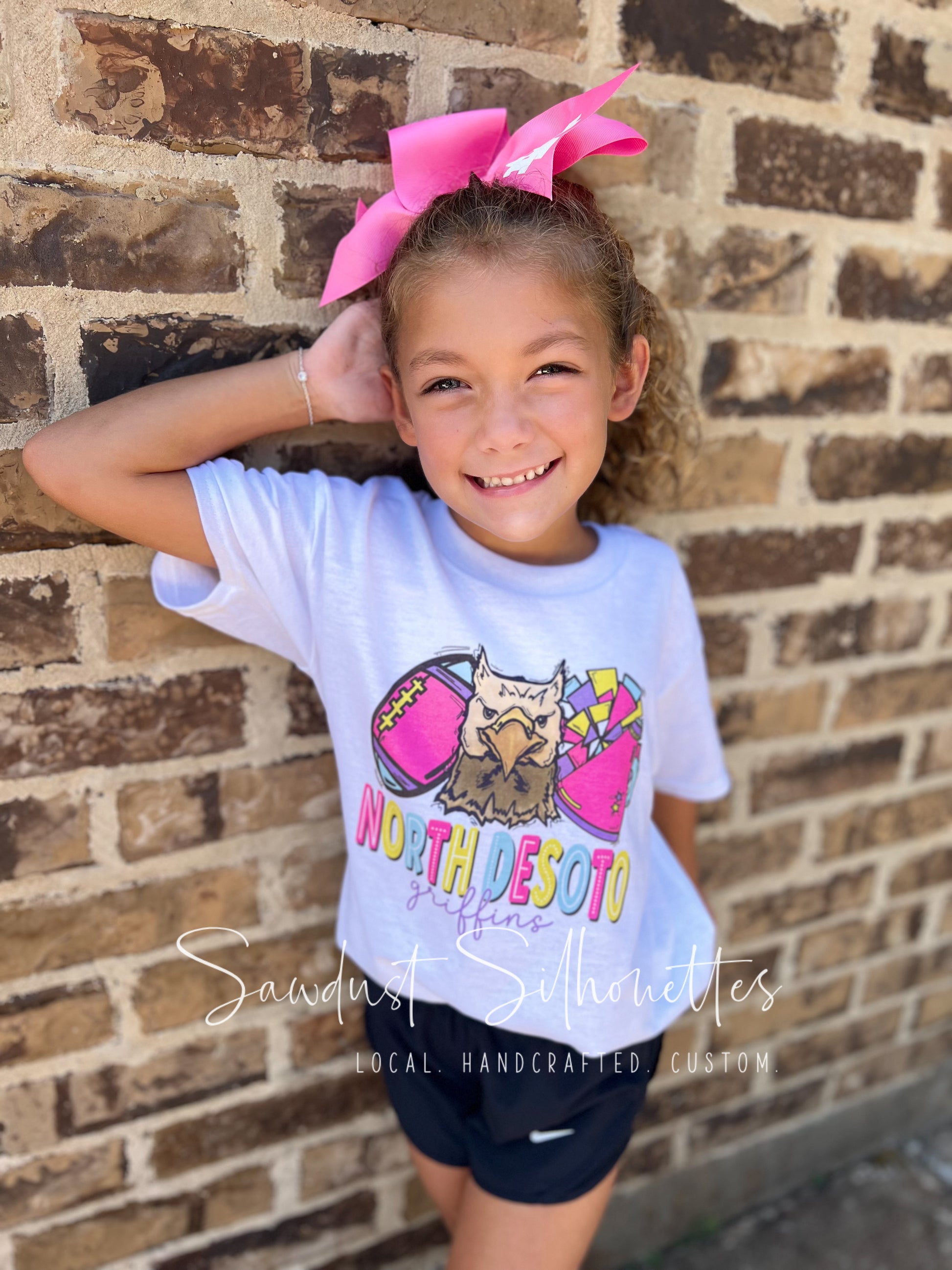 Get ready to conquer the new school year in style with our ND Bright Mascot Tee! This cute shirt is a collaboration with Blue Desk Designs, bringing together fashion and fun for the perfect back-to-school look. Show off your school spirit with a touch of whimsy.