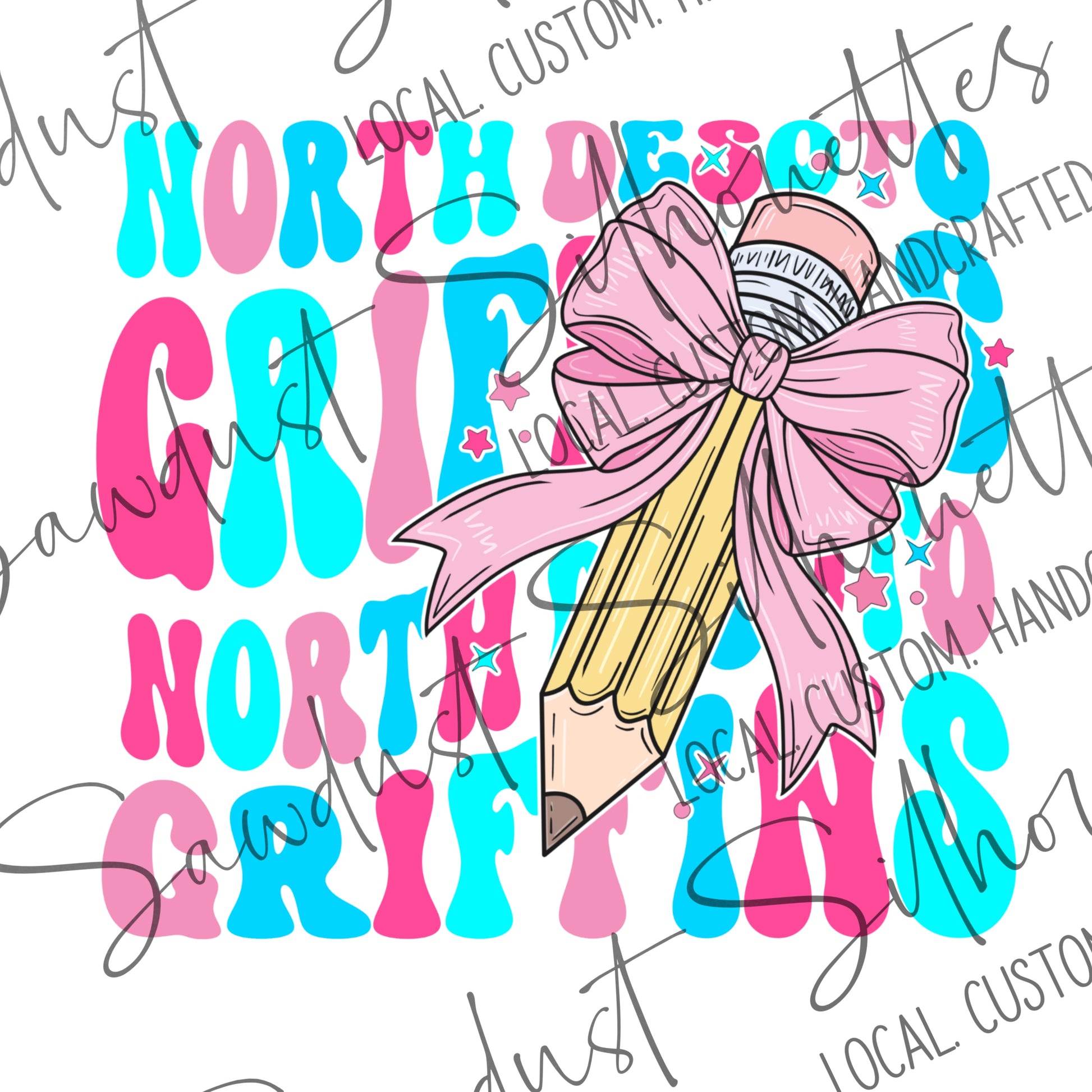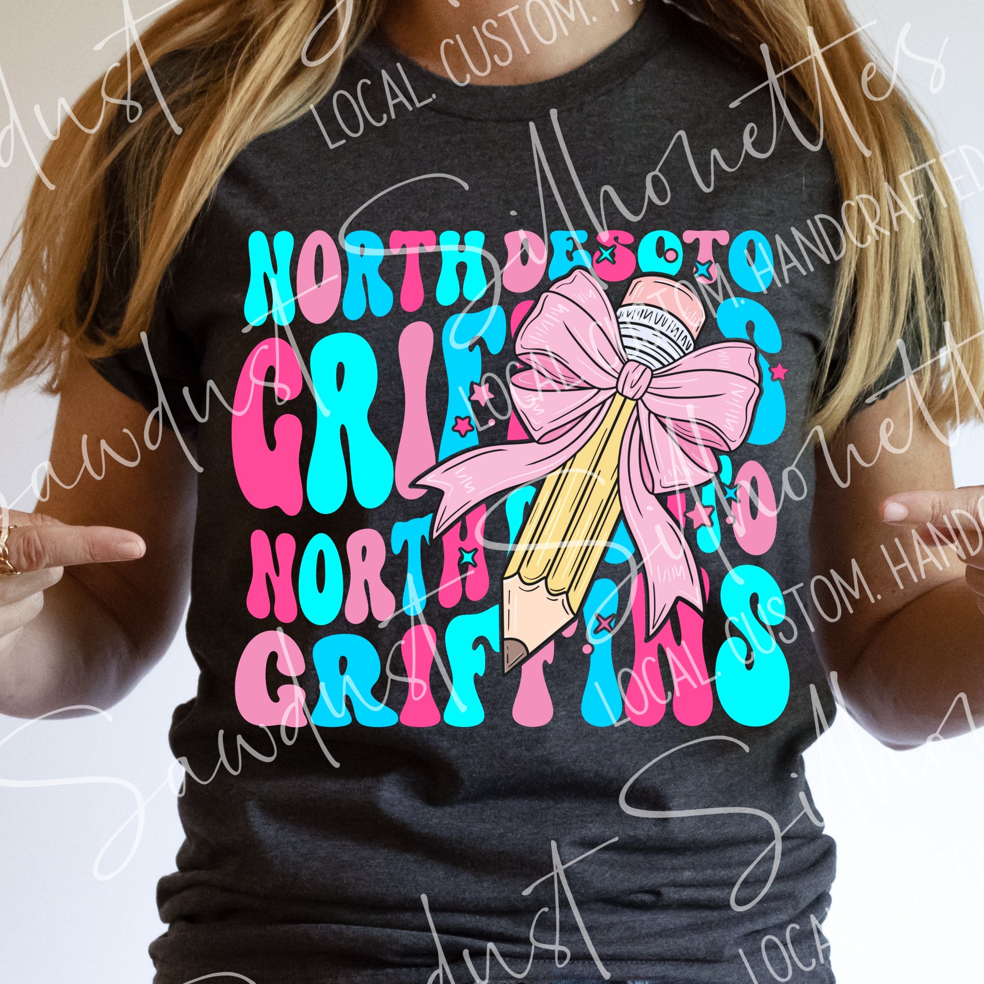 Get ready for the new school year with the North Desoto Griffins Coquette tshirt. Show off your preppy and cute style while representing your school spirit. Perfect for back to school season!