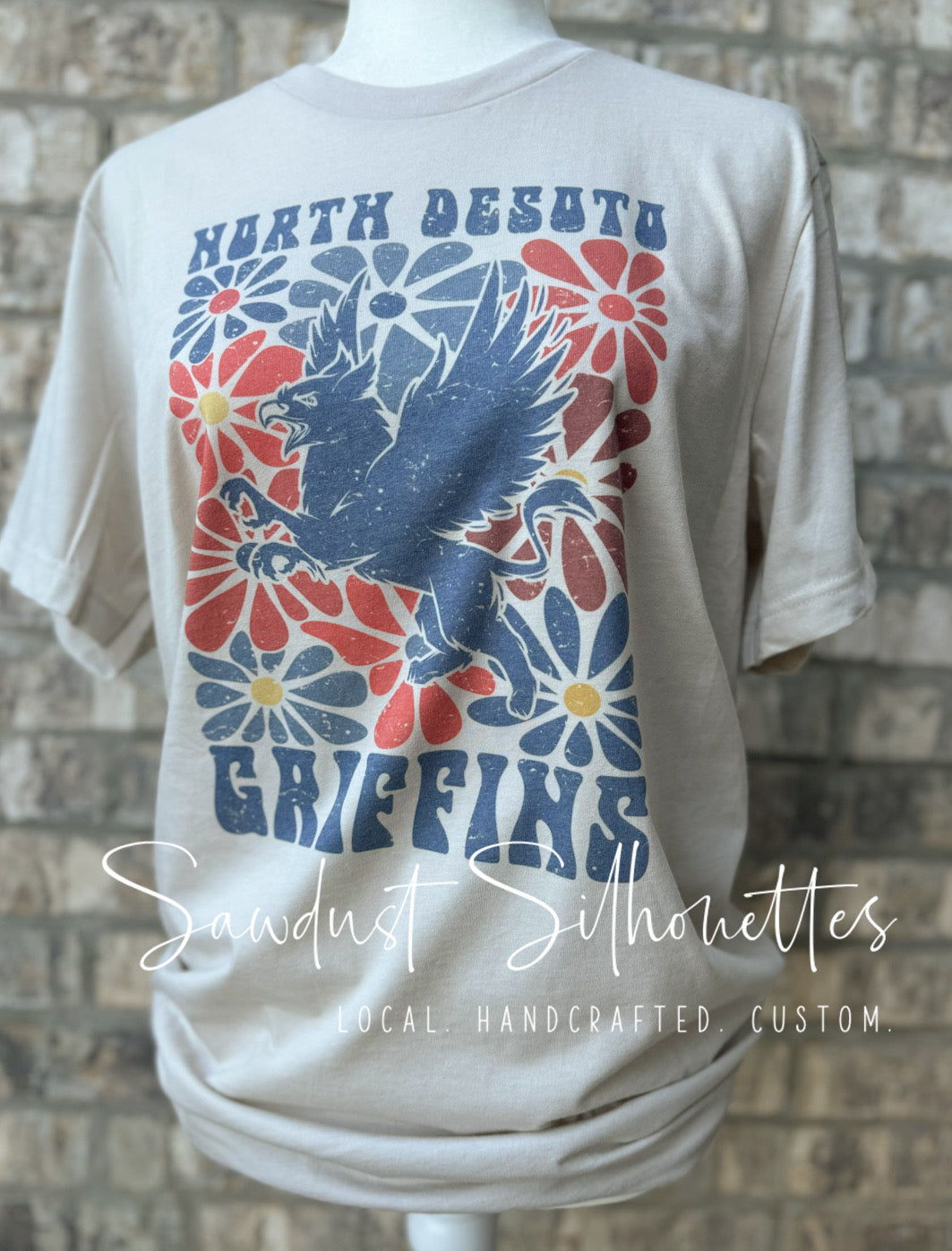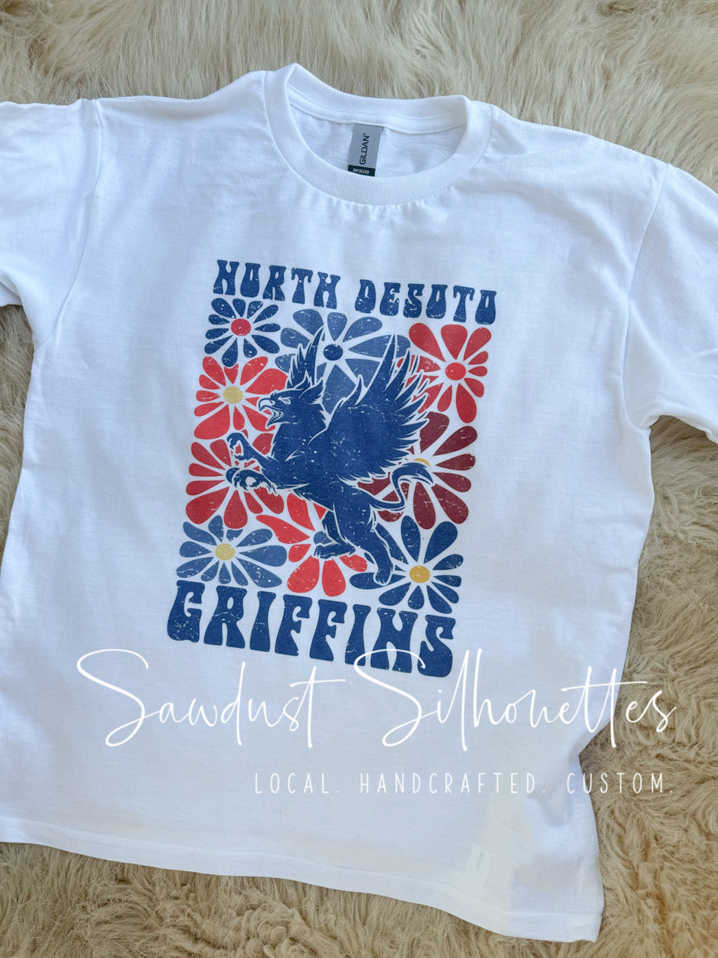Show off your cute and girly style with our Retro Floral Mascot Tee. Perfect for showing school spirit, this tee is a must-have for any fan. Stylish and comfortable, it's the perfect addition to your wardrobe.