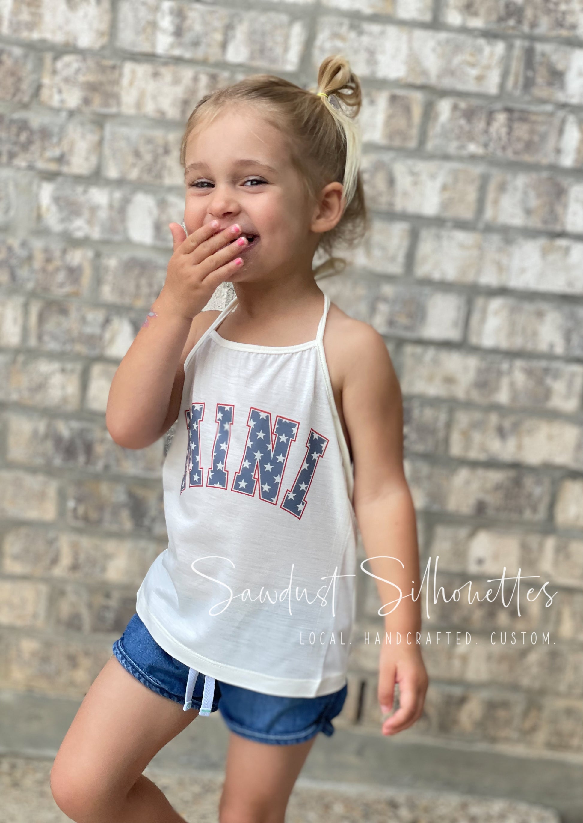 Please message for additional toddler halter top, ruffle tees, sleeveless dress, and tank availability (very limited, awaiting restock).